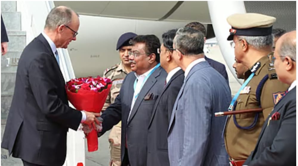 German Chancellor Friedrich Merz arrives in Bengaluru