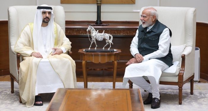 Dubai Crown Prince Sheikh Hamdan bin Mohammed Al Maktoum praised the enduring partnership between the United Arab Emirates (UAE) and India following a meeting with Prime Minister Narendra Modi in New Delhi.In a post on X, the Crown Prince wrote: “It was a pleasure meeting Prime Minister Narendra Modi today in New Delhi. Our conversations reaffirmed the strength of UAE–India ties, which is built on trust, shaped by history, and driven by a shared vision to create a future full of opportunity, innovation, and lasting prosperity.”