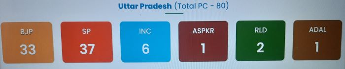 The opposition bloc's performance in Uttar Pradesh is being seen as a big surprise for the BJP that had almost swept the polls in 2014 with a stunning performance of coming out victorious in 71 seats and held its ground in 2019 by winning 62.In 2019, the Samajwadi Party won in five seats, Congress in one and Bahujan Samaj Party in 10.