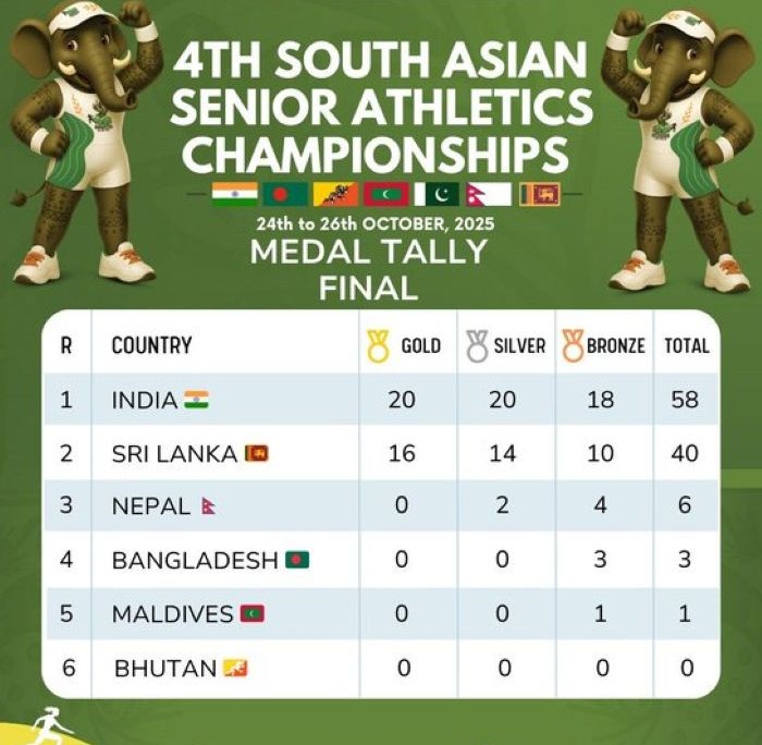 The men’s 110m hurdles saw Manav R of India grab gold in 13.78s. Sri Lanka’s Ranatungage Roshan settled for silver, and India’s Krishik M bagged bronze. India’s Sanjana Singh continued her golden form by securing her second gold medal of the meet in the women’s 1500m final with a time of 4:25.36s. Sri Lanka’s W.K.L. Arachch Nimali finished second, and India’s Kajal Kanwade took bronze. In the men’s 1500m final, Arjun Waskale of India claimed gold with 3:54.58s, ahead of the Sri Lankan duo Gallage Rusiru Chath and Rojideen Mohamathu. India’s Neeru Pathak also clinched gold in the women’s 400m, clocking 53.15s, while compatriot Olimba Steffi took silver and Mendis Balapuwa Sayu of Sri Lanka finished third.