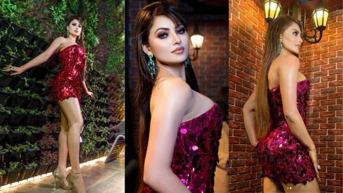 Urvashi Rautela looks Oh-so-fab in Sequinned Fuschia pink off-shoulder dress