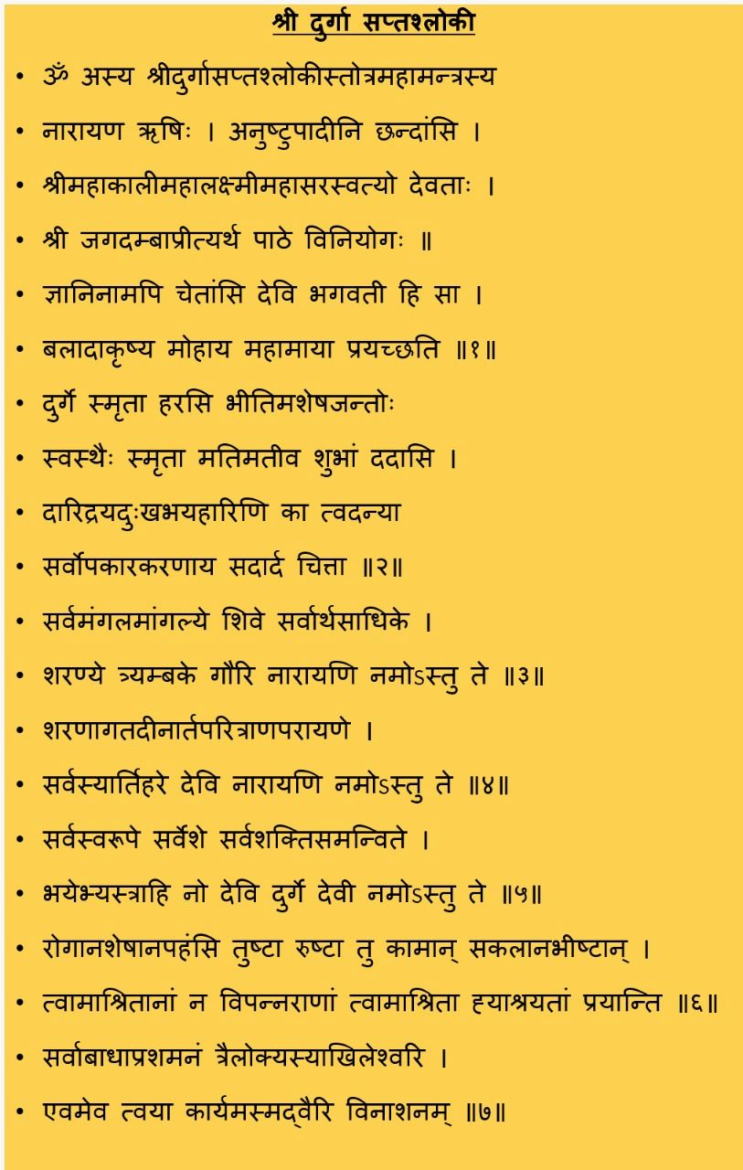 The Durga Saptashloki text describes the victory of Maa Durga over the 7 demons in seven different incarnations. Do it daily in Navratri.