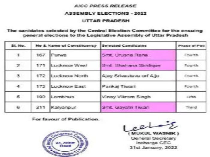 Union Minister of State for Law and MP from Agra SP Singh Baghel will be BJP candidate against Samajwadi Party Chief Akhilesh Yadav from Karahal seat. Meanahile, Akhilesh Yadav filed his nomination papers on Monday from Karhal constituency in Mainpuri district UP Assembly polls. This seat has always been treated string hold of SP. In 2017 and 2012 Assembly polls party's Sobaran Singh Yadav was elected.Baghel had entered politics as president of the Mulayam Youth brigade and went on to win thrice as Samajwadi party MP from the now-merged Jalesar seat, now merged with Etah seat. Baghel was a close confidant of SP patriarch Mulayam Singh Yadav and had twice contested against his family members, including Dimple and Akshay Yadav, and had lost on both occasions. Congress released its fifth list of UP Assembly Polls candidates. In this list six candidates are women. Of them Smt Gayatri Tiwari mother of jailed Ms Khushi Dubey in Vikas Dubey case, and daughter of famous Urdu Shayar Munauvar Rana are also included. Party has declared its 322 candidates for the poll. Of them 130 are women.
